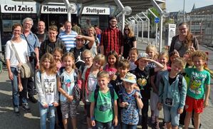 Schon früh am Morgen machte sich unsere stattliche Gruppe von 19 Kindern und 8 Begleitern mit Bus und Bahn nach Stuttgart zum Carl-Zeiss-Planetarium auf. Schließlich begann ja die Vorstellung „Das kleine 1x1 der Sterne und Planeten“ schon um 10 Uhr. Die Treppen von der S-Bahn hoch, durch den Hauptbahnhof hindurch, am Rande der Baustelle über den Steg in den Schlossgarten – geschafft! Nach kurzer Verschnaufpause ging es in den Saal, das Licht ging aus und die Reise konnte beginnen: